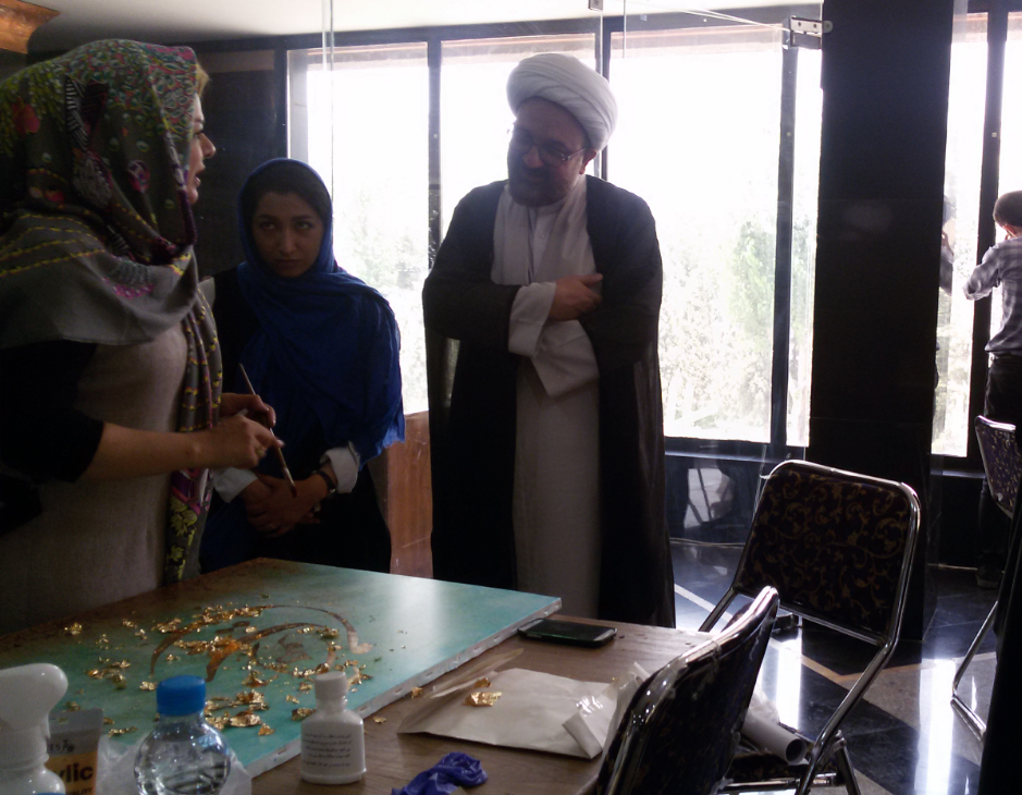 حجتالاسلام و المسلمین مجید سینایی، نیز از آثار هنرمندان بازدید کرده و با آنان به گفتگو پرداختند.
