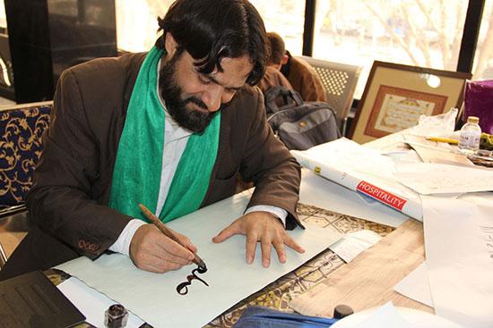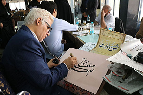 در این همایش هنرمندان خوشنویس که یکی از آنها استاد خوشنویسی حجت الاسلام سینایی بود، حضور داشتند که عبارت آسمانی «اللهم صل علی محمد و آل محمد» را مشق کردند. در این مراسم استفاده از خطوط نستعلیق، ثلث، شکسته نستعلیق، نسخ، نقاشی خط و ...آزاد بود.