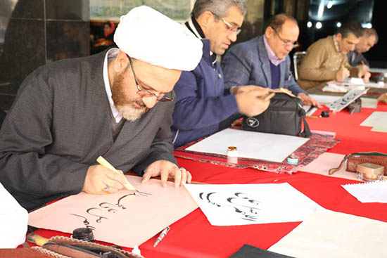 در این همایش هنرمندان خوشنویس که یکی از آنها استاد خوشنویسی حجت الاسلام سینایی بود، حضور داشتند که عبارت آسمانی «اللهم صل علی محمد و آل محمد» را مشق کردند. در این مراسم استفاده از خطوط نستعلیق، ثلث، شکسته نستعلیق، نسخ، نقاشی خط و ...آزاد بود.